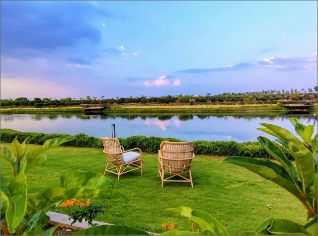 Once an irrigation tank, the lake at Villaggio has been repurposed into a man - made water body that now serves both as a working reservoir and a place to just be.